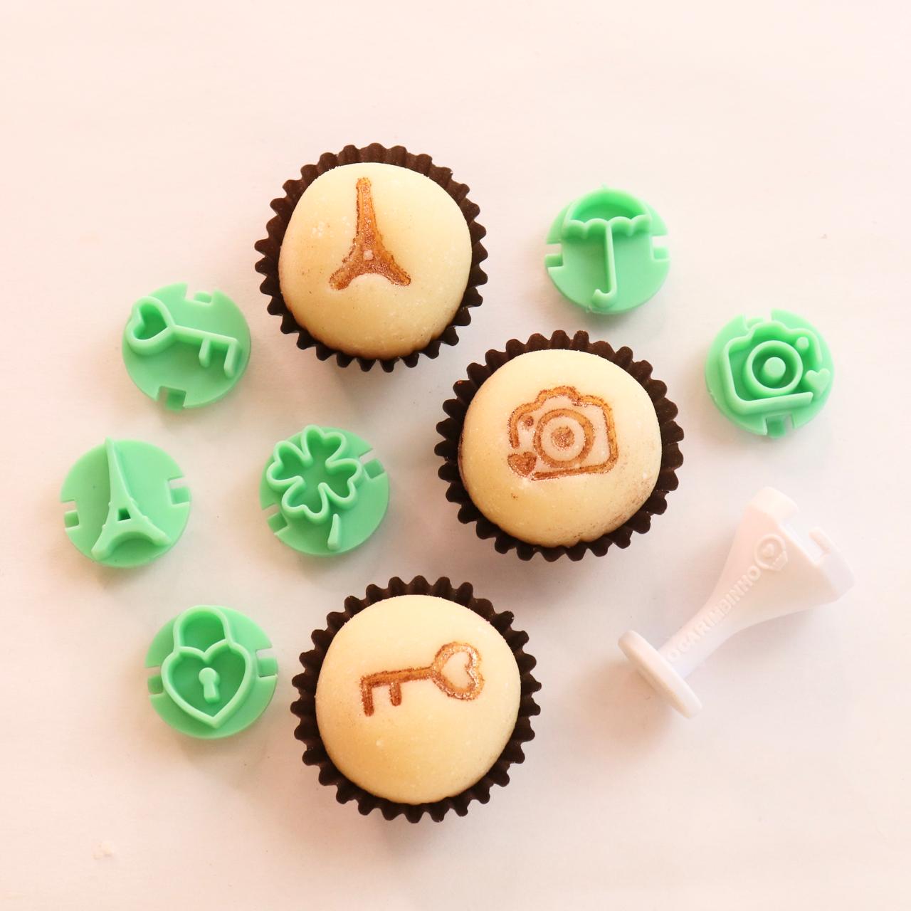 O Kit Carimbos para Brigadeiros Diversos 4 é composto por 8 (oito) peças, sendo 2 (duas) bases de fixação e as cabeças para marcação com um cadeado em forma coração, uma chave em forma de coração, uma câmera fotográfica, um guarda-chuva, torre eiffel e um trevo de quatro folhas. Com ele você fará marcações diretamente no brigadeiro a ser decorado, trazendo um efeito especial para seus brigadeiros.